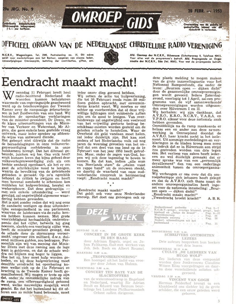 Rampen verbroederen, maar de Watersnoodramp van 1953 leidt tot een omroepstorm. De eigenwijze AVRO ligt onder vuur, en dat kost een hoop leden.