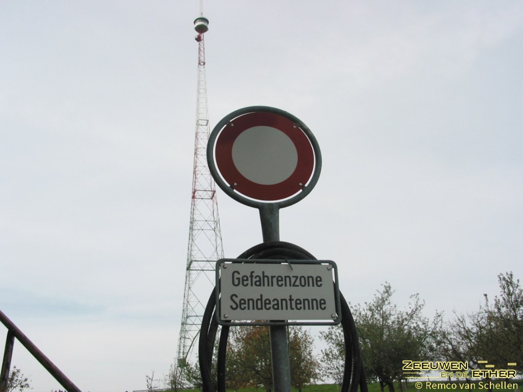 En dan: halte zendmast Blosenberg. Je moet er naar toe lopen, via een landweggetje. En dan sta je daar: voor het houten hekje, met daarachter nog een hekje, en daarachter de 215 meter hoge mast. Dus hier begint (of eindigt) de radioschaal…