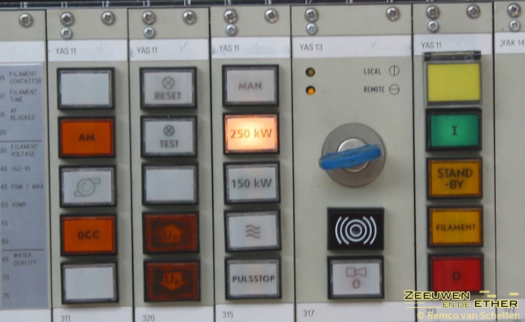 Als je wil kun je zo de knoppen indrukken (en de zenders ontregelen?). Zeeuwen en de ether doet dat natuurlijk niet, maar je krijgt onbewust wel de neiging als je achter een wat lullig plastic koord staat op twee meter afstand van de apparatuur. Wat een vertrouwen!