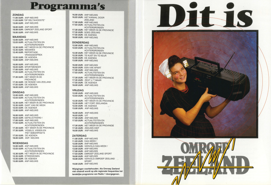 De eerste (glossy) folder Het is een glossy folder waar Omroep Zeeland begint 1990 mee komt. Het formaat is wat onhandig, maar alles wat erin moet staan staat erin: frequenties, de programmering, en wat foto’s. Dit delen: Klik om te delen op X (Opent in een nieuw venster) X Klik om te delen op Facebook (Opent in een nieuw venster) Facebook Klik om op LinkedIn te delen (Opent in een nieuw venster) LinkedIn Klik om te delen op Telegram (Opent in een nieuw venster) Telegram Klik om te delen op WhatsApp (Opent in een nieuw venster) WhatsApp Klik om dit te e-mailen naar een vriend (Opent in een nieuw venster) E-mail Vind-ik-leuk Aan het laden...