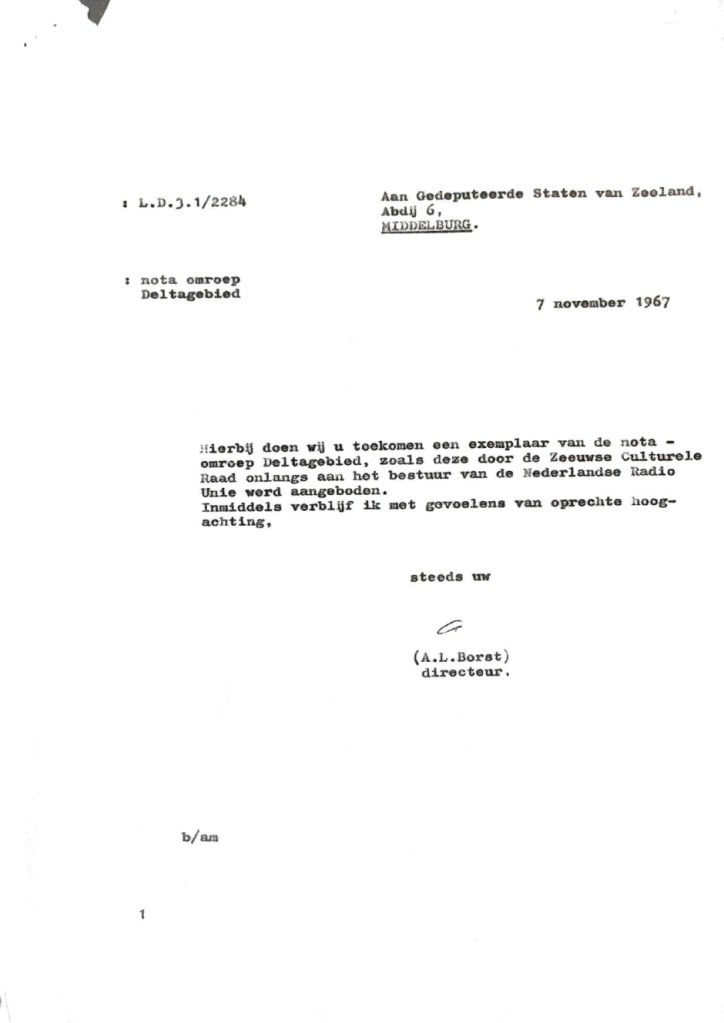De Zeeuwse Culturele Raad gaf een commissie in 1965 opdracht om te onderzoeken of het wenselijk was om in het Deltagebied een regionale omroep te stichten. In 1967 bracht de commissie zijn verslag uit.